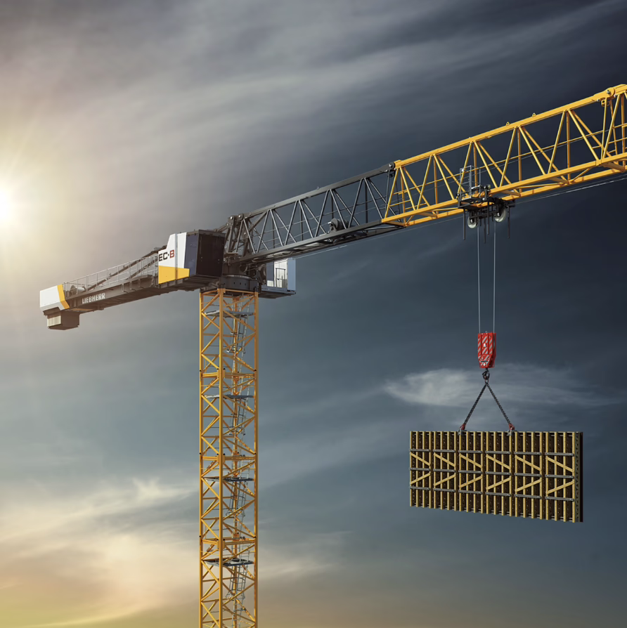 The 370 EC-B 16 Fibre (2021) is a versatile tower crane with a maximum lifting capacity of 16,000 kg, a 78 m radius, and a 91.7 m hook height, equipped with efficient FU SD.shift hoist and slewing gear for superior performance.