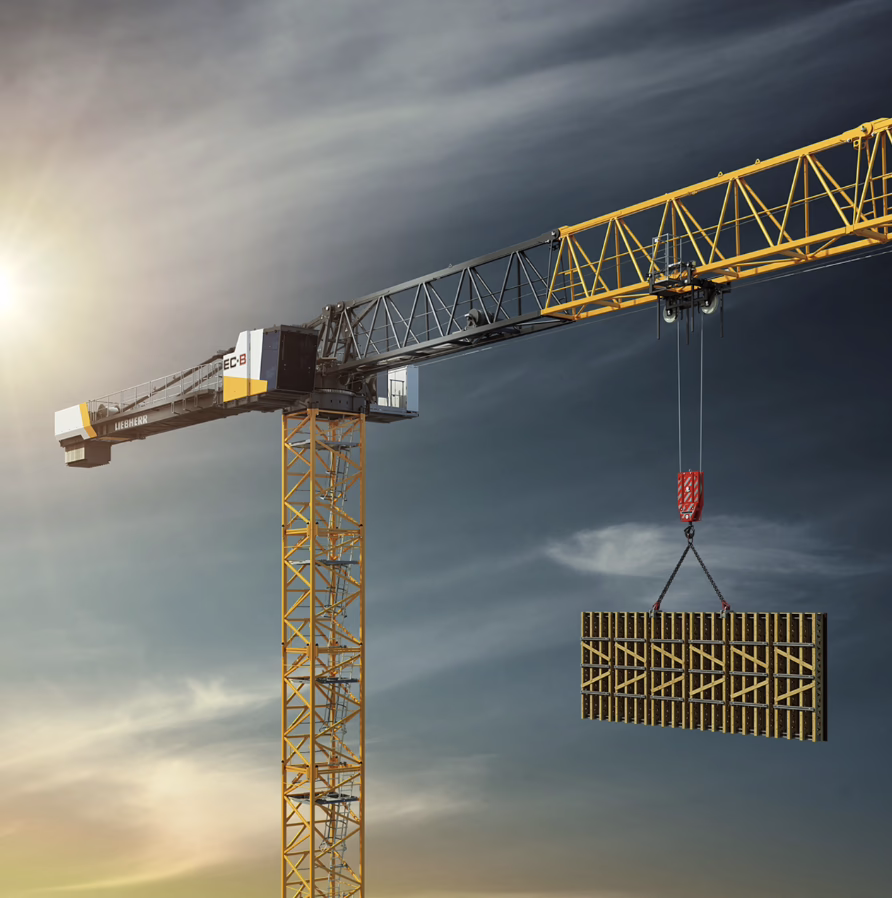 The 370 EC-B 16 Fibre (2021) is a versatile tower crane with a maximum lifting capacity of 16,000 kg, a 78 m radius, and a 91.7 m hook height, equipped with efficient FU SD.shift hoist and slewing gear for superior performance.
