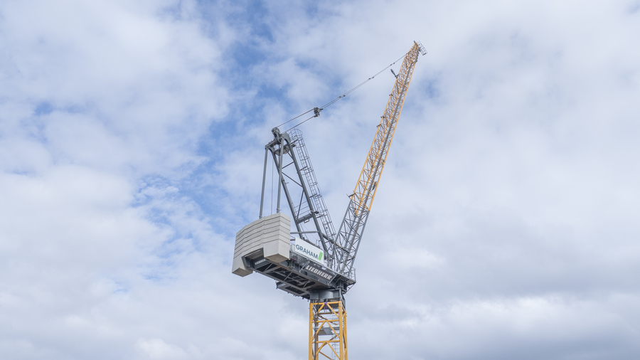 The HC-L280 HC-L 12/24 Litronic is a luffing jib crane ideal for high buildings and tight spaces, featuring automatic load hook movement.